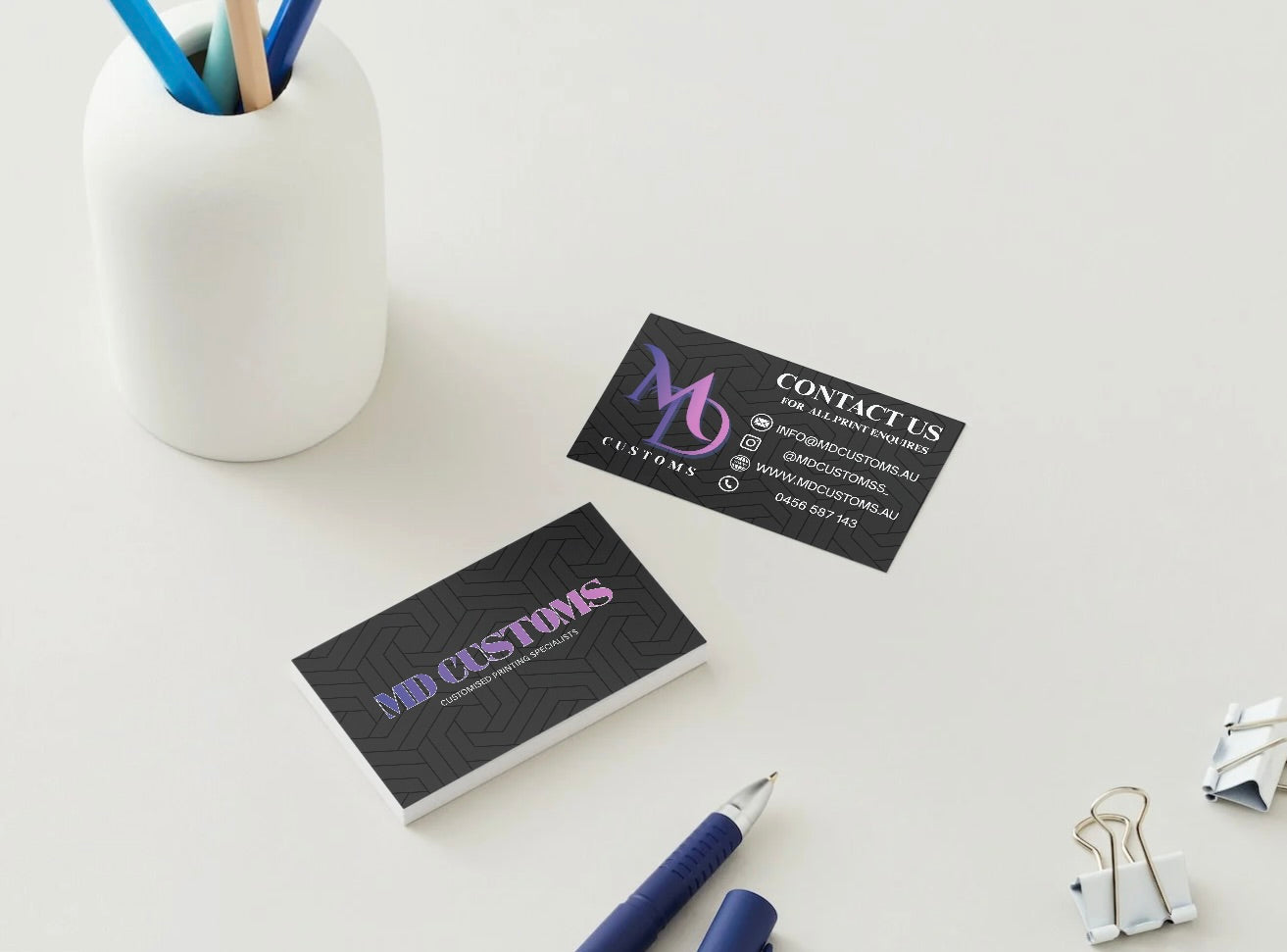 With our unusually wide variety of different machines the business cards come from everywhere. Metal, paper, wood, plastic you name it we'll make it and even design it from scratch. With so many variables in the options of materials, personal preferences and without knowing the numbers of your order it's hard to put a generic price. But from as little as $50 per 100 units you could change or start your business today with the team at MD CUSTOMS.